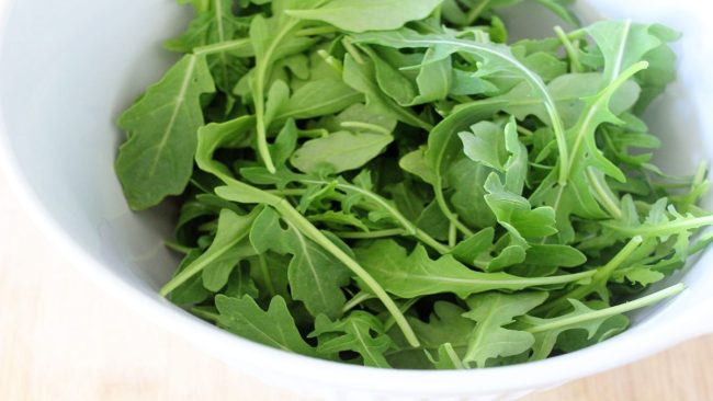2. اغسلي الجرجير جيدًا بالماء، ثم ضعيه في الخلاط.