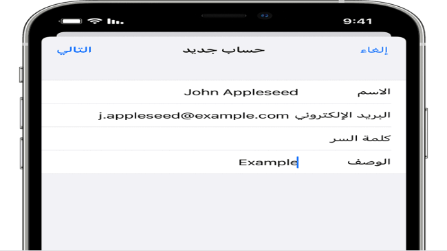 6. اتبع الإرشادات المعروضة لك على الشاشة لإكمال إضافة البيانات اللازمة لحسابك الجديد.