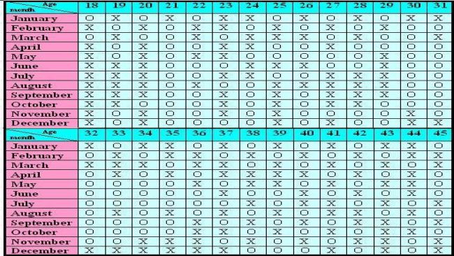 يتم بعد ذلك مطابقة هذه المعلومات مع التواريخ الموجودة في الجدول لتحديد ما إذا كان الجنين ذكرًا أو أنثى. توفر هذه الطريقة نظرة تقليدية يعتقد الكثيرون بصحتها وفعاليتها على مر السنين.